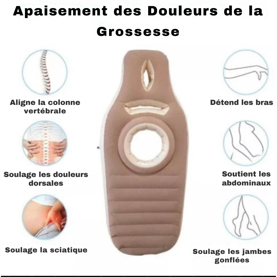 Sa conception a été pensée pour permettre à la future maman de se détendre sans risque : la matière est douce, stable, et permet de se positionner confortablement tout en respectant la physiologie de la grossesse.